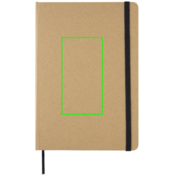 Kraft notitieboek A5. 72 vellen/144 pagina's van 70g/m2. Crèmekleurig papier. Met elastische band en bladwijzerlint.
