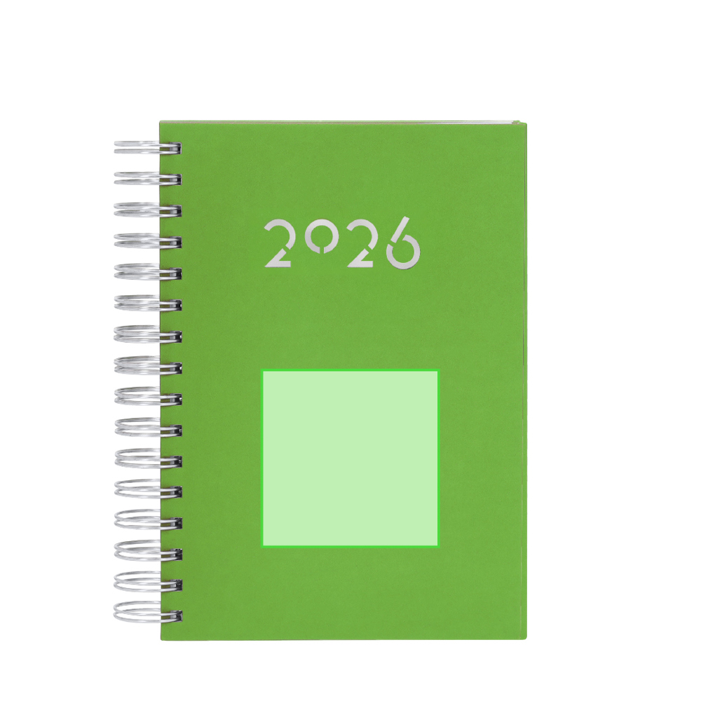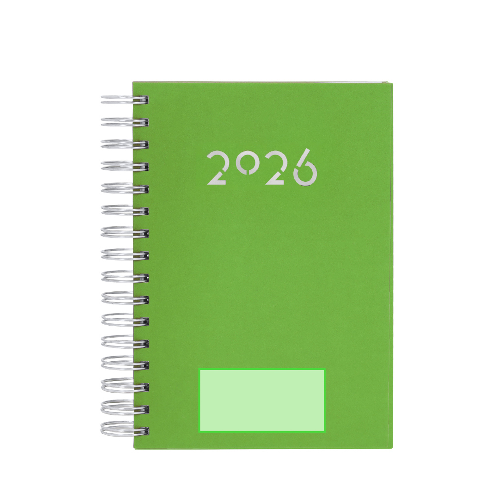 Ringband dagboek in A5-formaat van zacht en duurzaam PU-leer, met harde kaften. Inclusief een presentatiedoos van kraftpapier.Dagpagina ontwerp en pagina's met een uitgestanst hoekje. In 2 talen: Spaans en Engels.