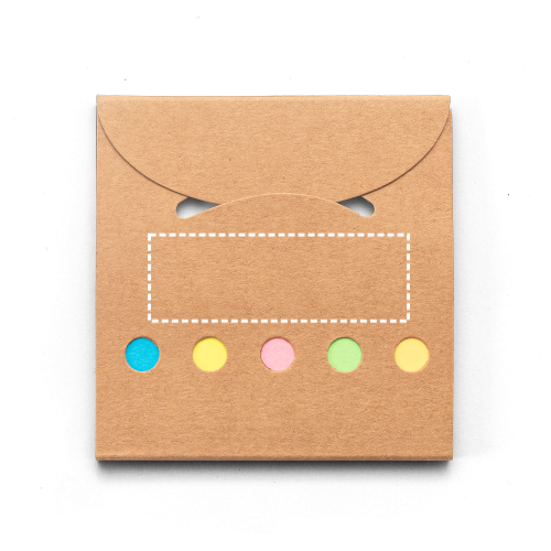 Kantoorset van 100% gerecycled papier, met 6 plaknotities. Bestaande uit 1 plaknotitieblok met 20 vellen 100% gerecycled geel papier en 5 kleine plaknotities (60 g/m²) met elk 20 vellen 100% gerecycled papier in verschillende kleuren: oranje, lichtgroen, roze, geel en blauw. Open: 205 x 85 mm | Gesloten: 85 x 85 mm
