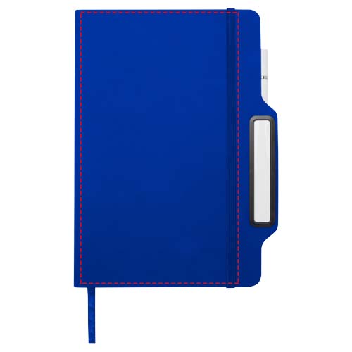 Het Nexus A5 notitieboek met harde kaft en combi pen/potlood heeft 80 crèmekleurige gelinieerde vellen van 70 g/m² papier, afgeronde hoeken, een elastische sluiting en een leeslint. De pen heeft twee koppen: aan de ene kant zit een pen met zwarte inkt en aan de andere kant zit een potlood. Schrijflengte van de pen: 1000 meter. Stiftmaat: 1,00 mm.