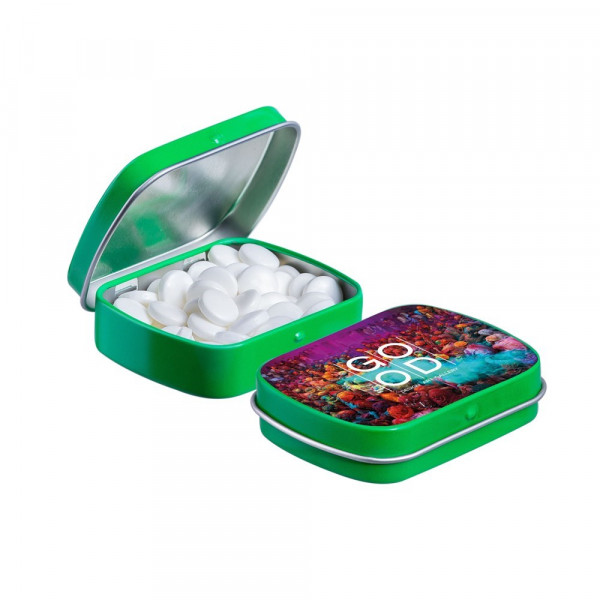 Mini scharnierblikje gevuld met pepermunt