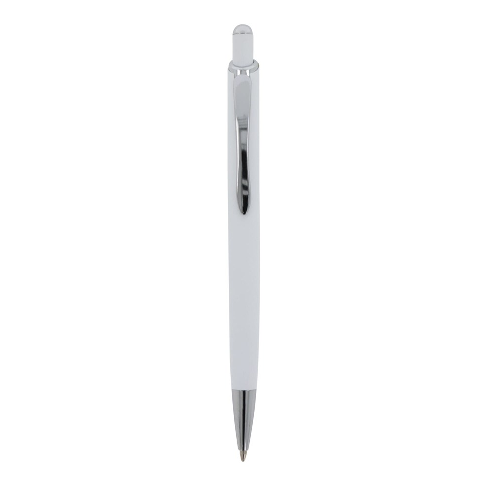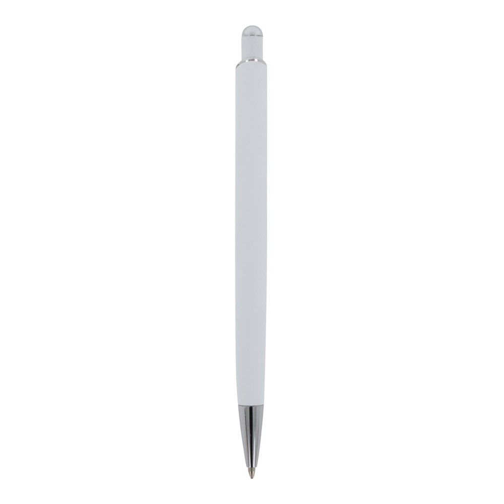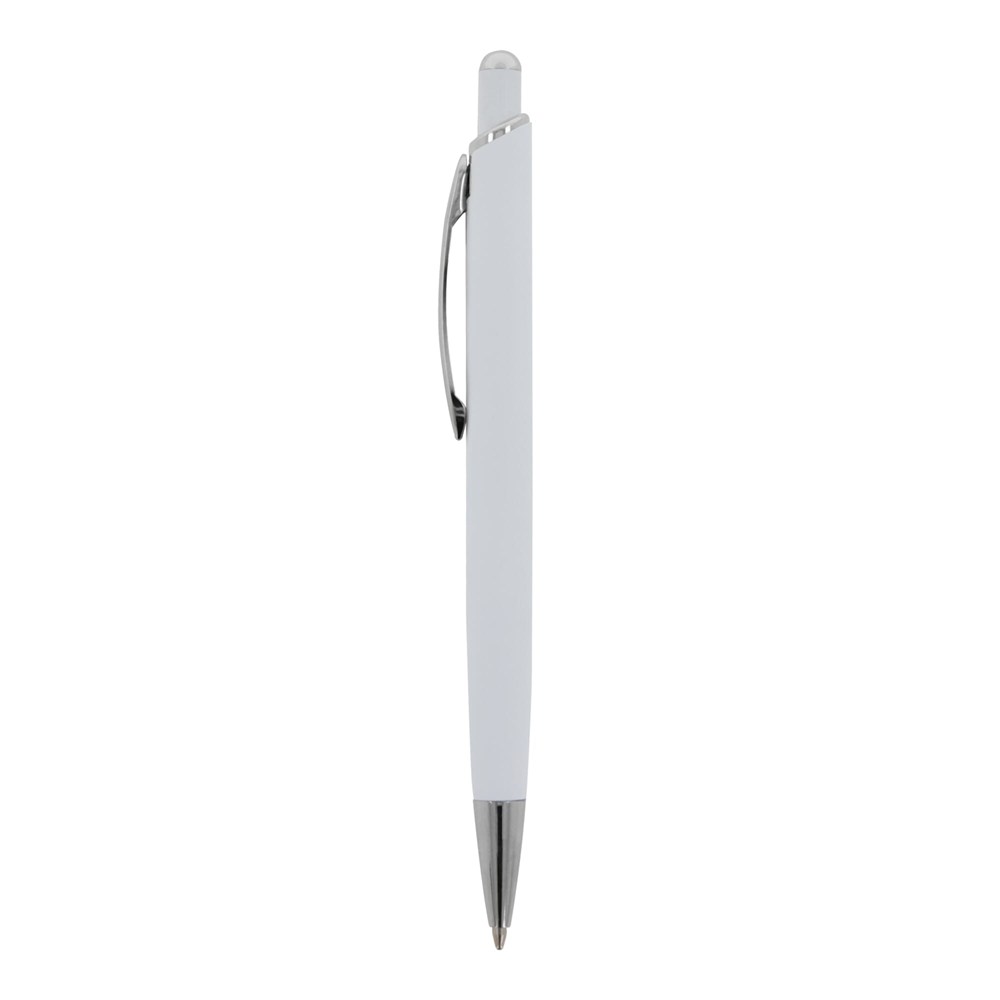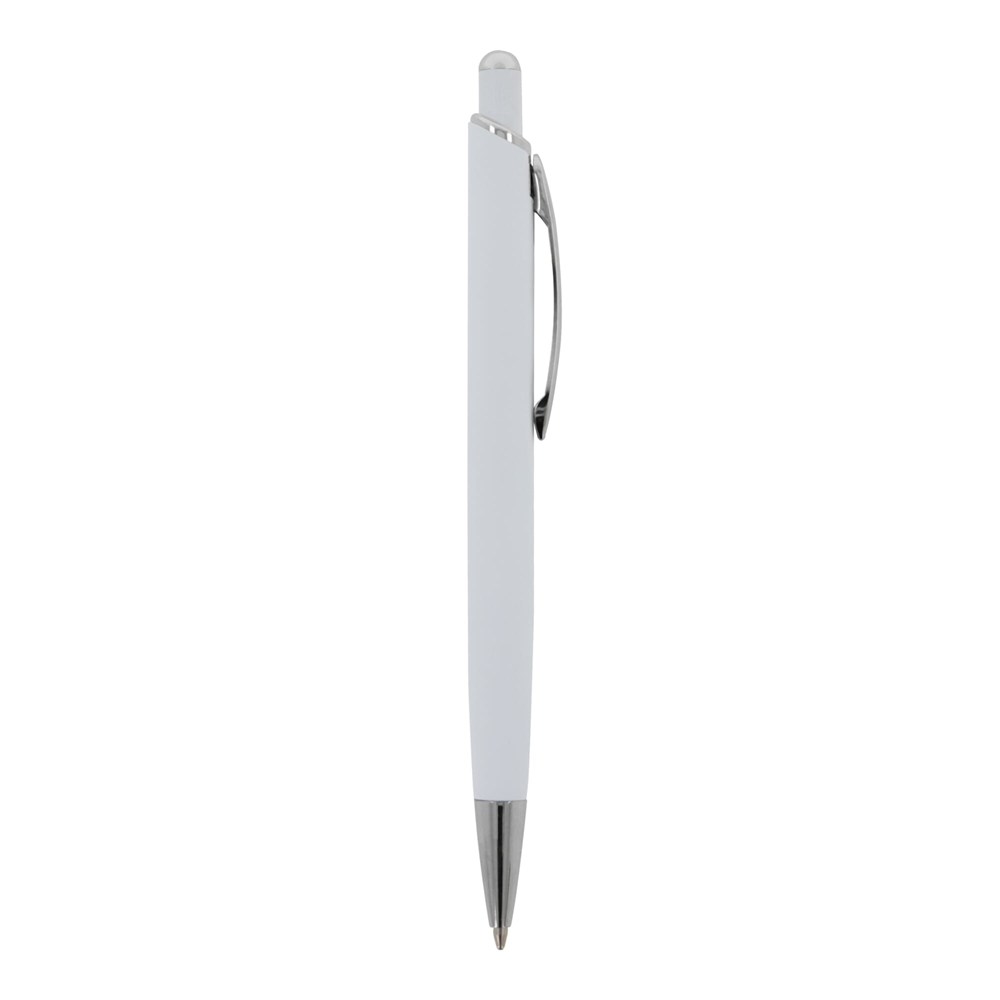 Aluminium balpen met elegante soft-touch afwerking. Met solide metalen clip. Schrijfkleur: blauw.