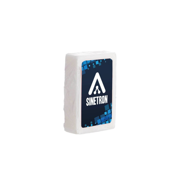 40 grams blokzeepje in folie met etiket, geproduceerd in Nederland.