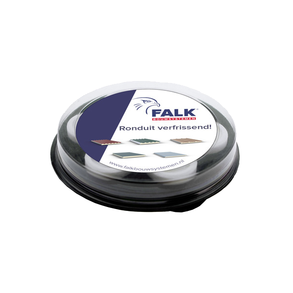 Rond zwart kunststof schijfje met 7 pepermuntjes