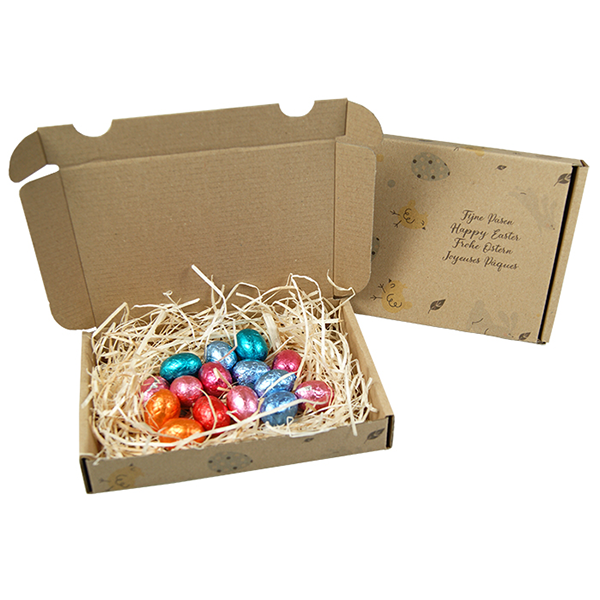 Brievenbusdoosje met klep voorzien van een gezellige Pasen bedrukking. Het doosje is gevuld met...meer