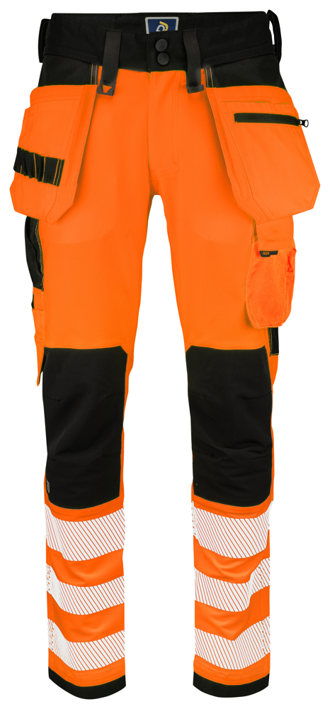 6573 SIGNALISATIESTRETCHBROEK MET KNIEZAKKEN EN SPIJKERZAKKEN EN ISO 20471 KLASSE 2 Oranje/Zwart C44