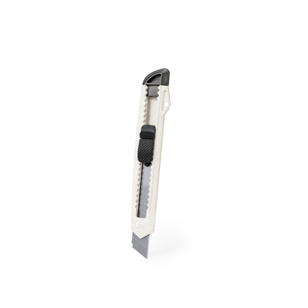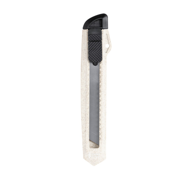 Snijder met breed lemmet gemaakt van tarwestro. Ergonomisch gestanste handgreep met afneembare kap voor het snijden van messen en veiligheidsvergrendeling. Met een tarwestro logo inbegrepen en gepresenteerd in een kraft design doos. Tarwestro bevordert het gebruik van natuurlijke grondstoffen, waardoor de uitstoot van verontreinigende stoffen wordt verminderd.
