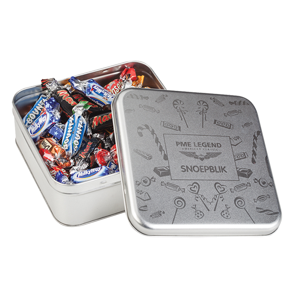 Vierkant snoepblik met gravure