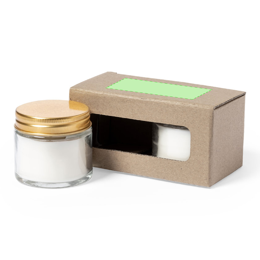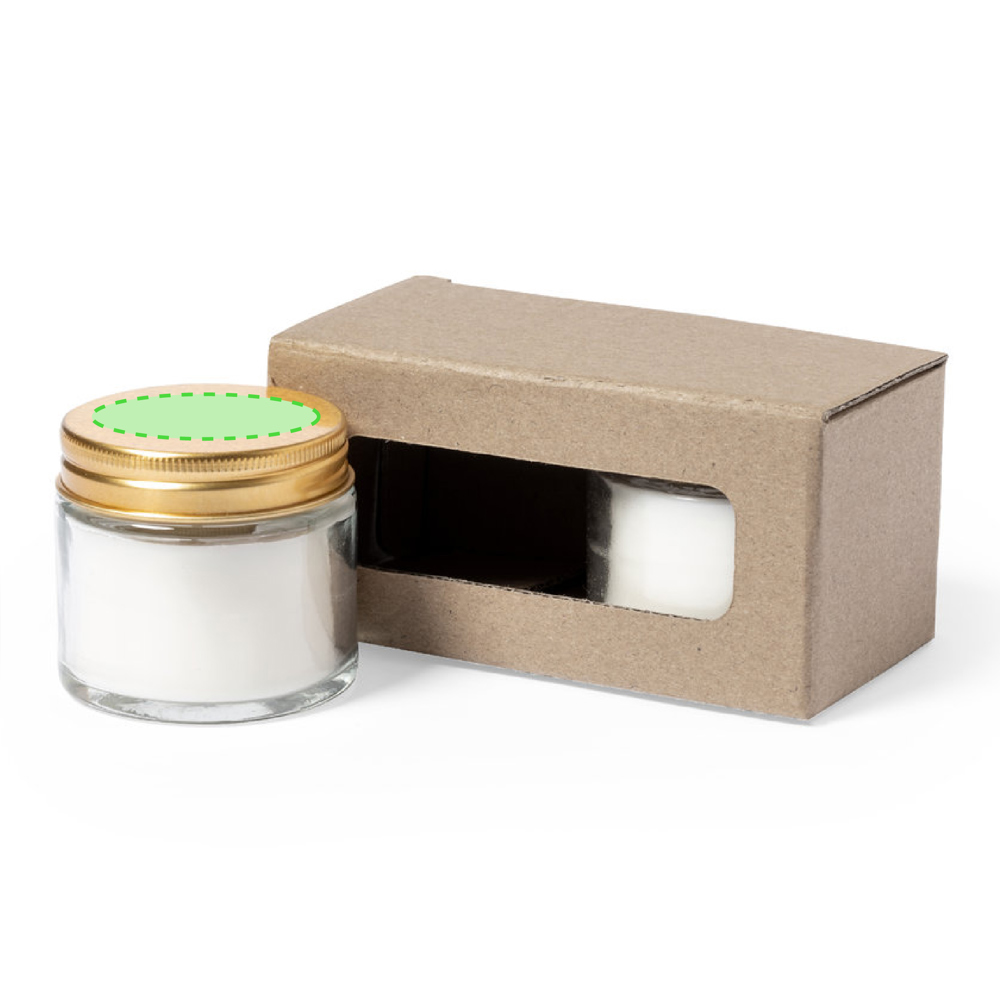 Set geurkaarsen, met plantaardige was en Freesia bloemengeur. In een glazen pot met metalen schroefdop en gouden finish. Gepresenteerd in een individuele kraftdoos.