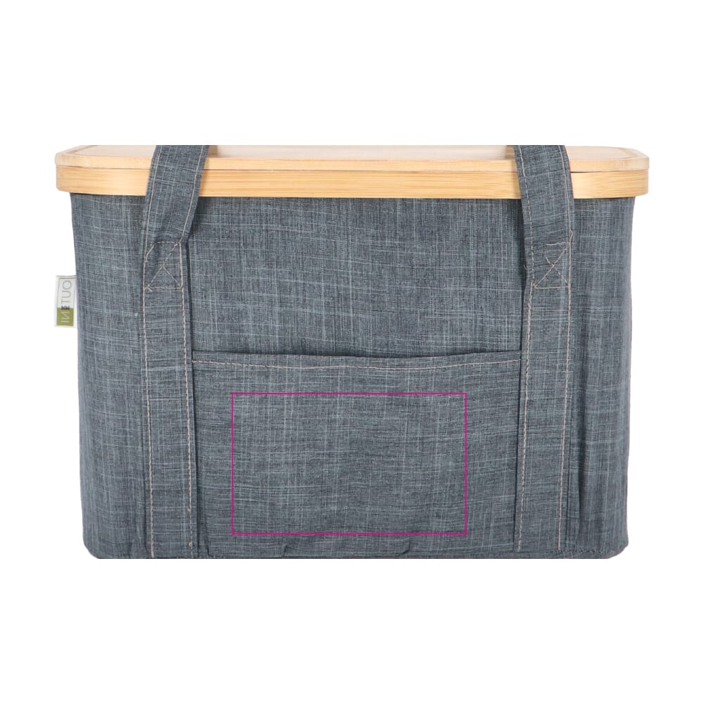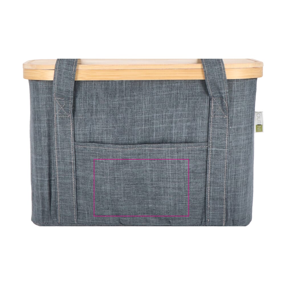 De mand heeft een bamboe deksel, dat ook als snijplank kan dienen, en is voorzien van handige voor- en achtervak voor extra opbergruimte. Dankzij de stevige hengsels neem je de mand moeiteloos overal mee, met of zonder gebruik van de koeltas. De mand en de koeltas zijn beide opvouwbaar , wat zorgt voor ruimtebesparing wanneer hij niet in gebruik is. Zowel het vakje aan de voorzijde als het bamboe deksel bieden ruimte voor het bedrukken of graveren van een logo. Kortom, de Sogne combineert stijl, bruikbaarheid en multifunctionaliteit in één slim en duurzaam ontwerp.