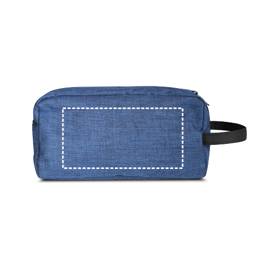 Hoge dichtheid 300D toilettas met handvat, voorvak, gevoerde binnenkant en ritssluiting. 220 x 115 x 115 mm