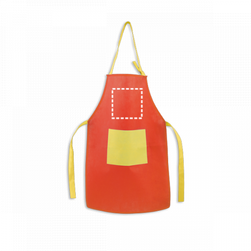 Non-woven kinderschort (80 g/m) met zak en verstelbare banden. 400 x 600 mm | Vak: 200 x 150 mm